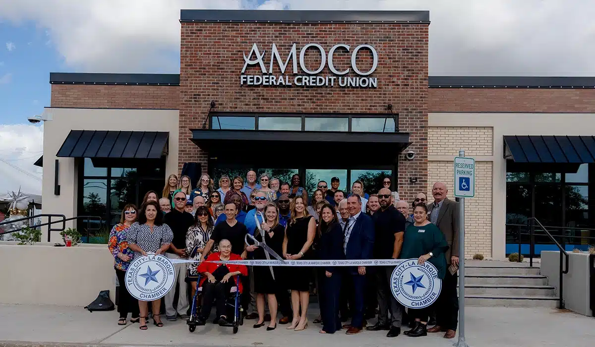 AMOCO celebrated the grand reopening of its newly remodeled Texas City Branch on Tuesday, November 18. The event featured a ribbon-cutting ceremony attended by community members, staff, and local officials. During the celebration, the branch was officially rededicated in honor of George M. Ballis, who served as Manager and President from 1973 to 1998, recognizing his significant contributions to AMOCO’s growth and the local community.
